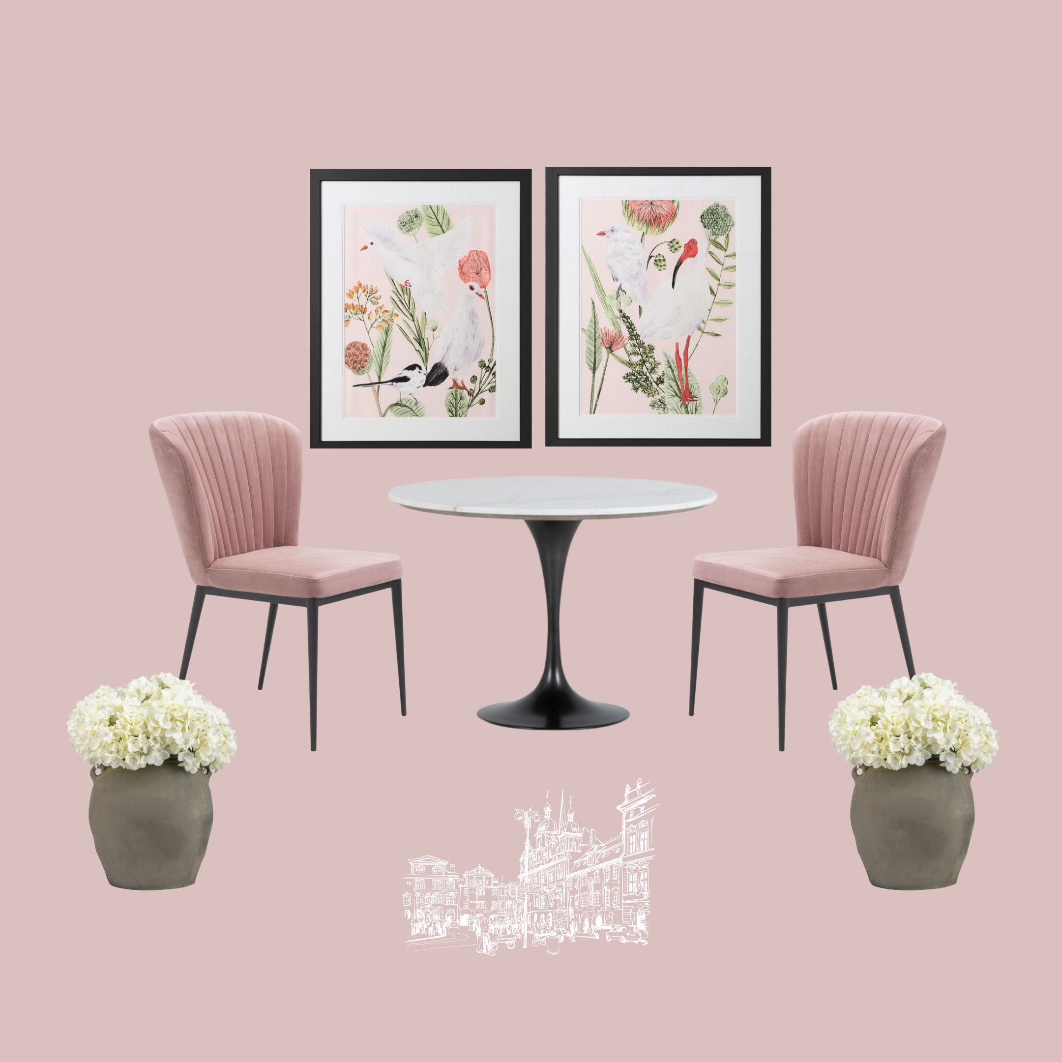 We want to help you style any space in any capacity! Whether that means remodeling with paint, wallcovering, cabinetry, or just adding a few pink accessories. With our bundles and this new collection, we have everything. If you're looking to add art and furniture and flip your whole space, check out the collection that you feel suits YOUR style best, or never be afraid to mix & match! Within each of the collections are some of our favorite accessories if you're just looking to add a pop of pink. Art is another great way to add some color without redesigning your whole room. Whatever you're looking to do, Blanc & Noir Pink Collection is sure to be the answer! Below are some of our FAVORITE art pieces that will add a subtle tone of pastel pink to your walls and get you that Barbie Inspired masterpiece you've been waiting for. Find them on the website titled Tropical Window Landscape & Pink Grey.