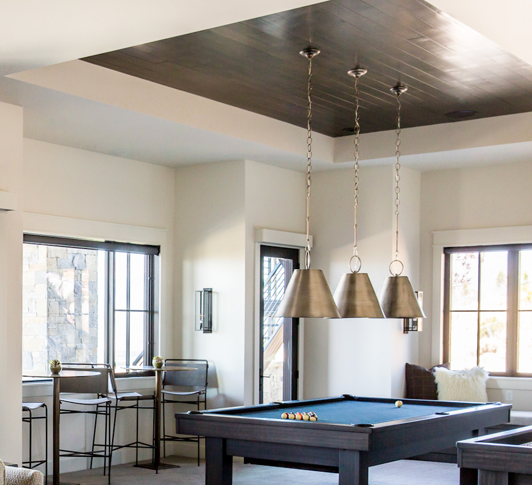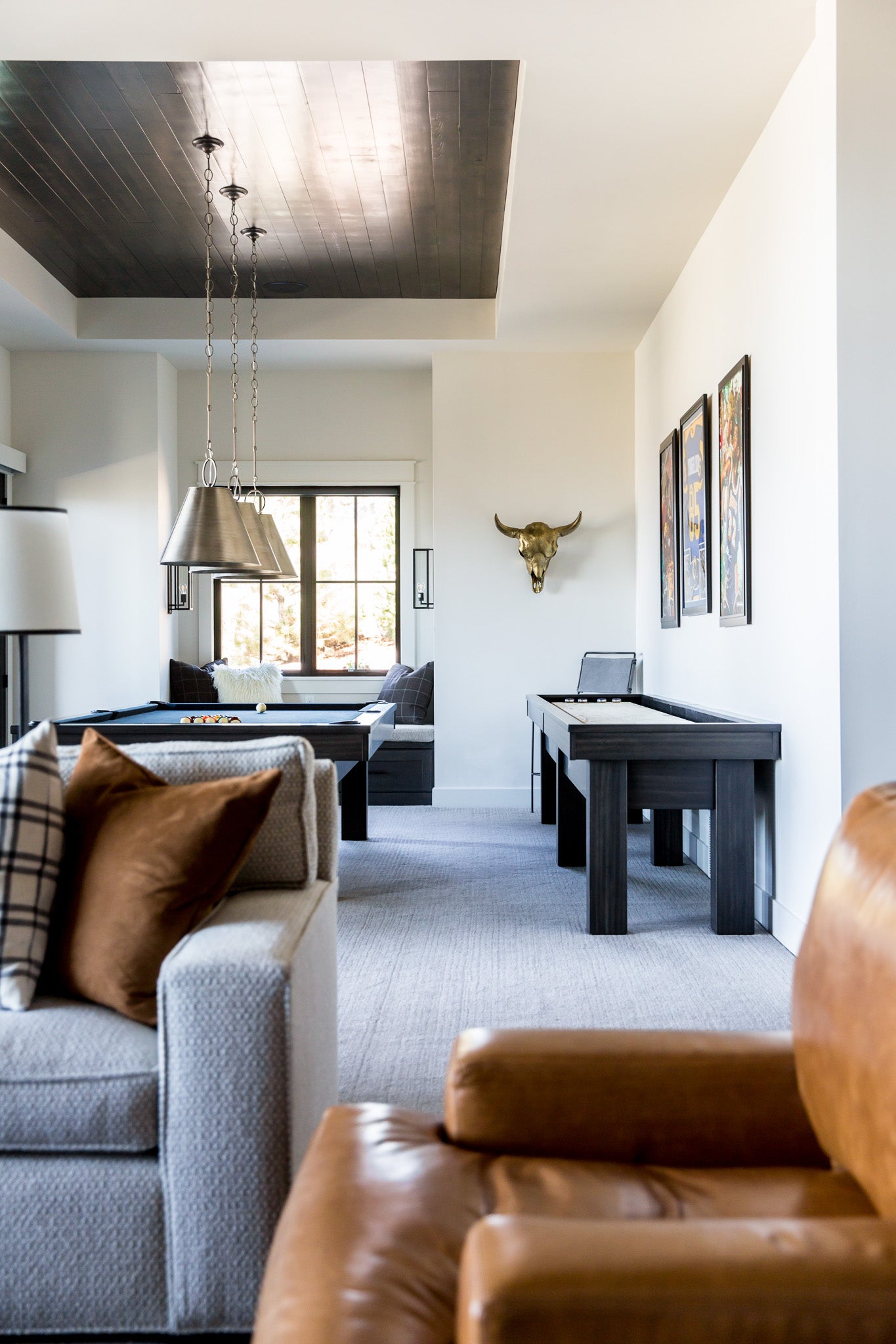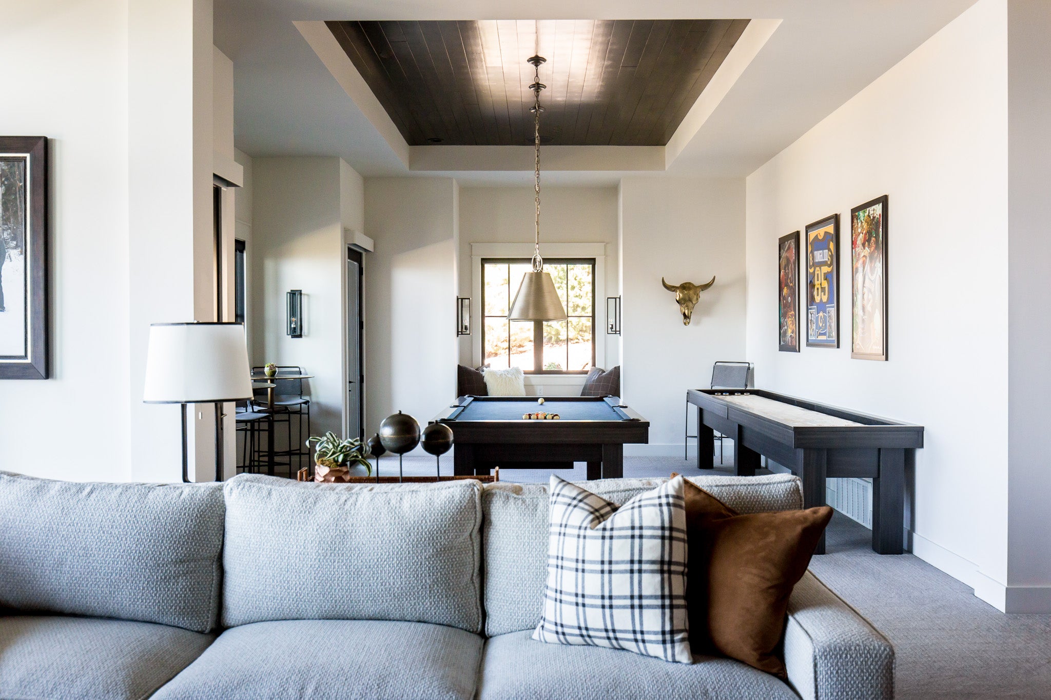 Are you a gaming enthusiast looking to level up your living room? Look no further! In this design journal, we’ll show you one of our favorite design projects ~ The Haven Basement Retreat! This home was featured and a show favorite in the Park City Showcase of Homes. Read on to learn how we got our clients' living room ready for every big game! First we started with a thorough inventory of all the essential items that our clients wanted for their family and friends to enjoy. Some of their top priorities were a pool table, shuffleboard, big screen TV, pub tables, bar area and more!